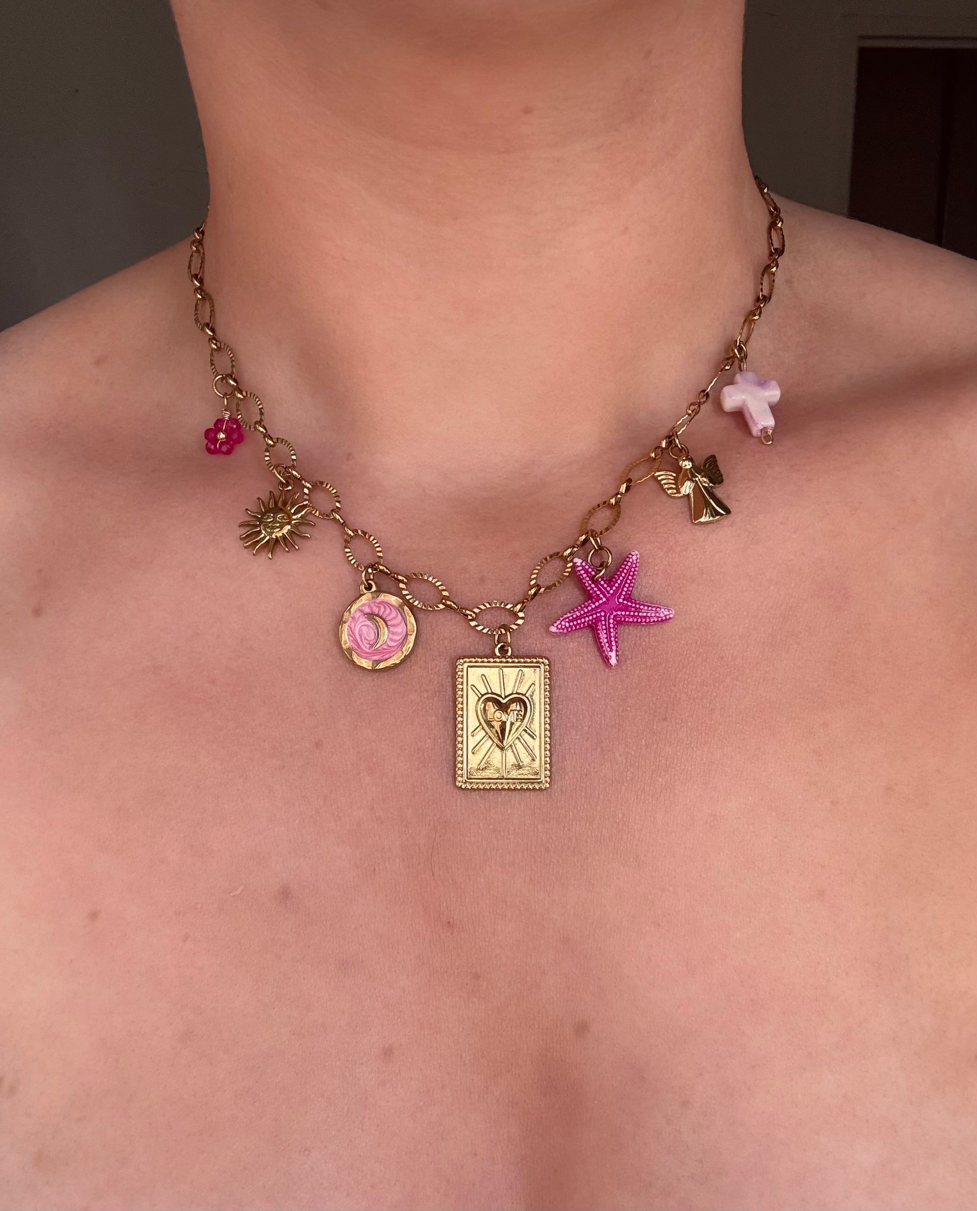 Collier avec ses 7 charms et sa chaîne, tout en acier inoxydable 🌸